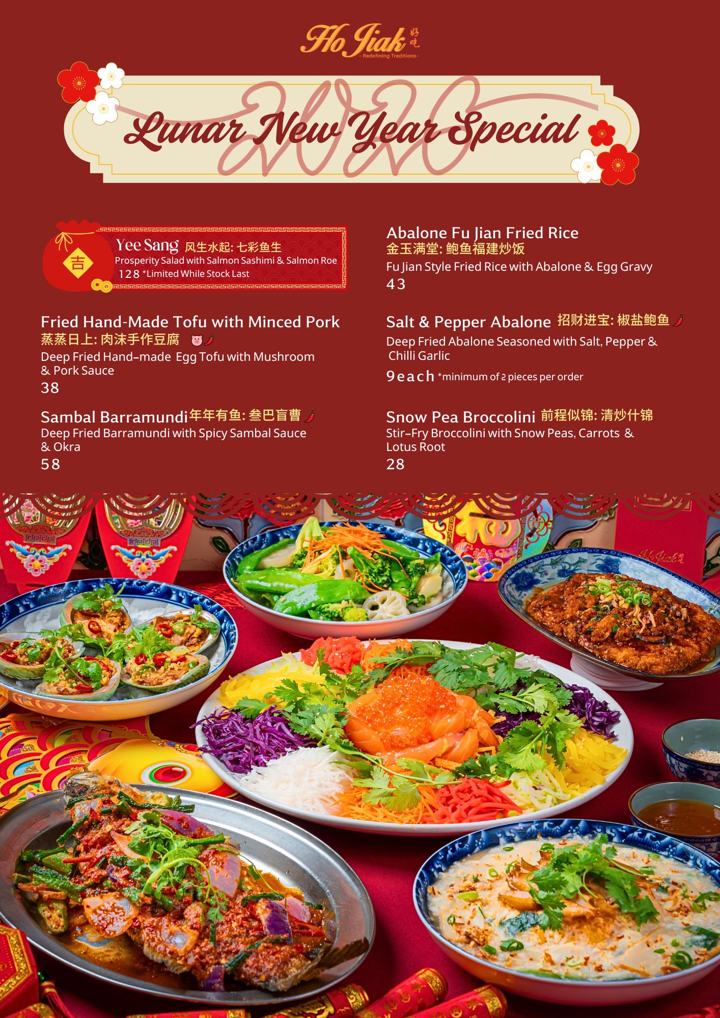 Celebrate Lunar New Year with us, pre-order is available from 10th Feb - 1st Mar. Pre-order Yee Sang (at least 24 hours) is required.